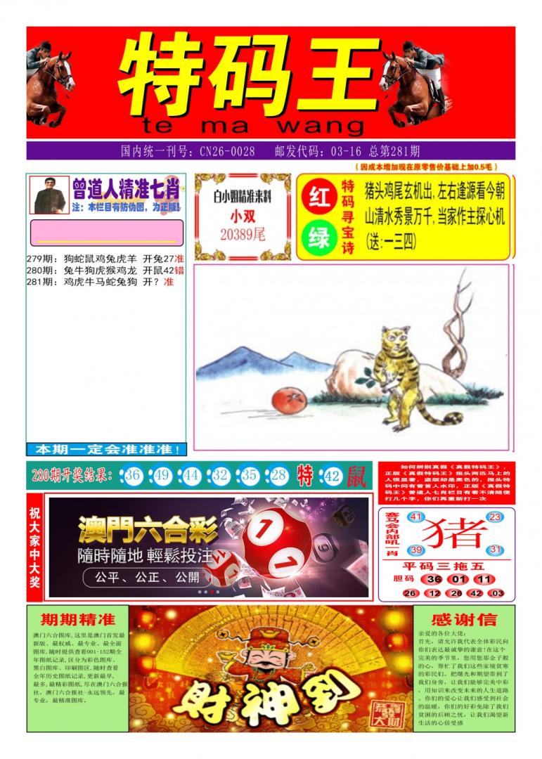 281期:中特网【致富三码】奇人送码 |